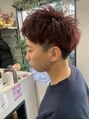 men'sカットツーブロックの束感ショートです。カラーはブリーチ毛にレッドブラウンを入れて仕上げました。