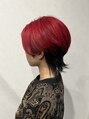 一際目を引くレッドカラーで注目の的に!!襟足とトップのカラーを変えることで個性的でオシャレなウルフスタイルになります◎