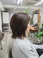 くびれミディアムに、ブリーチなしで作るオリーブベージュをオン。スタイリングはバームで◎ ※カラーは、お髪の状態により、Wカラーが必要な場合がございます。