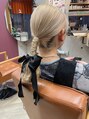 最近流行しているタイトアレンジ♪大きめリボンを付けることで甘辛MIXになり周りと差が付くこと間違いなしです!!