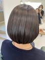 艶Bobスタイル。カラーはオリーブグレージュで落ち着きもありつつ柔らかい質感に。髪質改善トリートメントでまとまりのある艶感に!