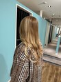 インナーブリーチ、バレイヤージュの自毛に、シールエクステ100束でなじませ。元がボブだったので、なじませカットで、レイヤーとスキを入れて、馴染むように調整してから取り付けました。