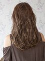 オリーブ系のベージュで赤みを消し、透明感、くすみ感を出したカラーになっております。前髪から流れるような顔周りのレイヤーで動きを出しやすいスタイルです。毛先のワンカールで可愛いセミロングなのもポイントです!!