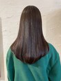 ミディアムロングの長さでも重たく見えにくく軽さを感じるようにカットしています。イルミナカラーで暗めの透明感カラーが相性が良いです。
