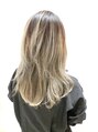セットが簡単で、伸びても崩れにくいセミロングウルフに切って酸性ストカールをしました。ブリーチ部分が伸びていたのでシャドールーツ風にハイライトを入れてトナーでシルバー調に整えました。【池袋・池袋東口・酸性ストカール・シャドールーツハイライト】