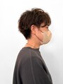 ショートのパーマスタイルです。サイドとバックは短めのマッシュショートベースにパーマをかけてます。朝のスタイリングは濡れた髪にムースやワックスを付けて完了です。カラーはマット系のベージュを使用して赤みを抑えてます。
