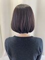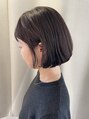 スクエアのシンプルボブにワイドなフルバングを。カジュアルなファッションが好きな方におすすめです。