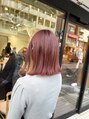ブリーチなしカラー/ピンクレッドカラー/ミディアム/髪質改善