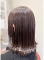 自然に肩に沿ってまとまる外ハネボブに透明感のあるアッシュブラウンを入れました。落ち着いた雰囲気が好きだけど真っ黒にしたくない方にオススメです。