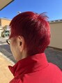 1ブリーチベースにカラートリートメント混ぜたカラー材でビビットなレッドに^^