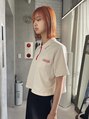 カラーはブリーチカラーで色味をしっかりと出しながらも、柔らかく馴染んで見えるペールトーンのオレンジ。暖色は自然光でより柔らかく透けてその人の雰囲気や表情を明るく見せてくれる効果もあります。