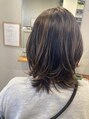 ミディアムレイヤ-スタイル!白髪ぼかしハイライト◎