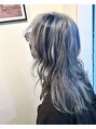 全体をケアブリーチで抜いた後ネイビーブルのハイライトとシルバーを☆アディクシーカラー使用。