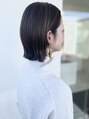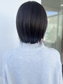 丸くならないボブスタイルです。重く見えすぎないように、表面にハイライトを入れて艶髪のオリーブカラーに仕上げました。