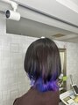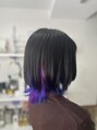 表面は、ブリーチしてもすぐ抜けやすいカラー剤でブラックに染めています。インナーカラーは4色のユニコーンカラーで、ウルフとの相性もバッチリです。