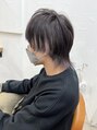 カットはマッシュウルフベースのスタイルに顔まわりは引き締め効果を狙い斜め気味のアーチバングにカット。カラーの見え方を考え、バックのウェイト(膨らみ)は低めの位置に設定。カラーは2ブリーチベースにプラチナレジェンド8をオン。アウターは2LV