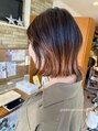 オレンジのグラデーションカラー*毛先にブリーチでグラデーションを作ってます。根本が暗く丁寧にグラデーションを作っているのでとっても長持ちします♪カットは肩ラインの外ハネ