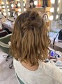 ルーズに捻ったアレンジヘアです。波打ちウェーブは、アイロンで仕上げてます。