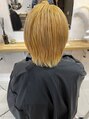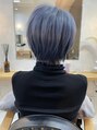 ケアブリーチをしてインディゴブロンドをオンカラー。軽めのショートでモードな印象に。ショートカットに変化をつけたいかたにおすすめです。