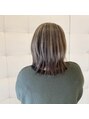 大人女性向けの、白髪ぼかしスタイルです。ハイライトを細めにブリーチで入れた後にエドルカラーのグレージュとアッシュをMIXしてダブルカラー。カットは、外はねのミディアムウルフにしました。