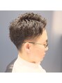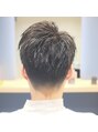 サイドは膨らみを抑えるためにツーブロックを入れトップはボリュームを出しやすいよう少し長さを残してカットしております。