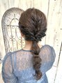 トップを中心に全体をルーズに引き出して柔らかい印象に仕上げた編みおろしスタイルです。