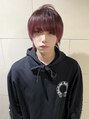 カットはマッシュウルフベースのスタイルに顔まわりは引き締め効果を狙いぱっつん気味のアーチバングにカット。カラーの見え方を考え、バックのウェイト(膨らみ)は低めの位置に設定。カラーは2ブリーチベースにピンクローズをオン。アウターは8lv