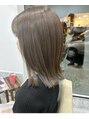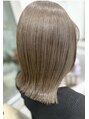 アッシュベージュのカラーリングは透明感がアップして艶っぽく見えます。カラーリングのケアにケラチントリートメントで栄養分を与えサラサラな仕上がりに。ストレートアイロンで全体を真っすぐにし、さらにツヤ感アップ◎
