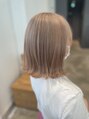 ガーリーかつ、品がある、長めの外ハネボブでカットし、艶のでやすい明るめのピンクベージュをのせました