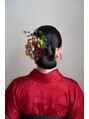 ヘアセットはつるんとしたシニヨンに、メイクはオレンジピンクのシャドウにブラウンと赤系のアイシャドウを入れさせていただきいてお着物との統一をだしました。