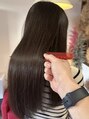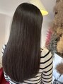 当店看板メニューの髪質改善ストレート。ダメージを抑えたナチュラルな仕上がりに。髪がツヤツヤサラサラに♪