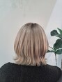 ダブルカラーで作るミルクティーベージュ。肩で外ハネしやすい長さのベースに、レイヤーを入れた軽いスタイル。