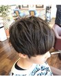 マッシュスタイルで上に少し流れや動きが出るようにカット。休日にはきちんとセット。学生に人気です。