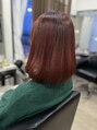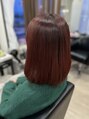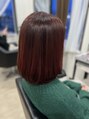 ブリーチアオンカラー、髪質改善トリートメントM3Dトリートメント、酸熱トリートメント鮮やかレッド、サラサラボブ