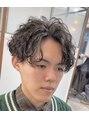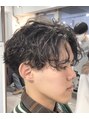 波巻きパーマを細かく入れ、波動きをより分かりやすく表現しました。長さはセンターパートができる長さで、前髪は目にかかるくらいです。