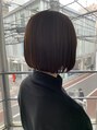 まとまりの良いコンパクトなミニボブスタイルに深めブラウンカラーストレートでも内巻き外巻きでもアレンジを楽しめるスタイルです。ボリュームがある方は一緒にコスメストレートで落ち着かせて楽ちんスタイルに。