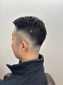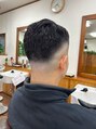 短いバリカンで高めにスッキリとカット、トップや前髪をアイロンをかけました。