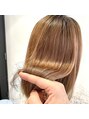 表面ブリーチ毛に柔らかいミルクティーカラーをオン!柔らかさの中にブリーチによるダメージを髪質改善で抑えております。
