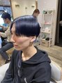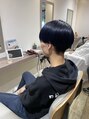 - カラー&カットブルーブラック切りっぱなし前下がりマッシュ