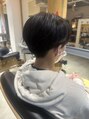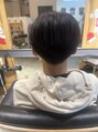 はちがはっているので、耳上はほんの少し刈り上げてすっきりと、全体は量感をしっかりと調整してセンターでふんわりと流しています!