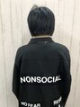 黒髪ベースに地毛のお色も付けながら、薄いパープルでハイライトを多く入れてバレイヤージュ風のグラデに★