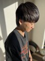 メンズのウルフスタイル☆トップのマッシュ感も残してマッシュウルフに♪カラーはブリーチ履歴を活かして暗めのグレー☆
