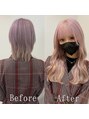ピンク×ベージュ#シールエクステ#ベビーピンク#くびれヘア#大須