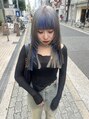 シルバーとブルーで作るコントラスト。全体ブリーチ二回です。顔まわりに入れたレイヤーカットでアイロンのみでスタイリング可能★