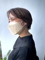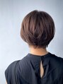襟足短めのショートボブ。軽さを出しながら女性らしい丸みを残した万人受けするショートスタイルです!カラーはベージュに少しシルバーを足して落ち着いた雰囲気に☆