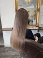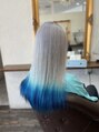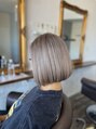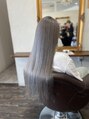 色持ちをよくするため、ラベンダー味を残したシルバーとなります。根元を生かしたバレイヤージュデザインとなるため、ブリーチの頻度は、3か月~半年に1回を目安にしております。