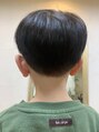 お子様のツーブロックマッシュスタイル。耳周りから襟足にかけてすっきりツーブロック。トップは丸みをとりすぎないようにウェイトをキープしながらバランスを調整しました。