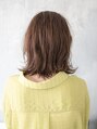 鎖骨うえくらいでカットしたミディアムベースに顔まわりからつながるように、サイドとトップにレイヤーをいれています。毛先を外に軽く巻くだけで簡単には動きのでるスタイリングになります!バングはやや広でかなり薄めに作りました。