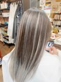 アンブレラカラーでTOPは暗めグレー系カラーに中(90%)をブリーチでシルバー系に♪ほぼブリーチカラーでの施術なのでトリートメントもしっかりサラサラに☆