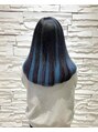 スカイブルーのメッシュを数枚入れるだけで、他の方と差をつけるお洒落ヘア★ブルーブラックとの相性抜群!